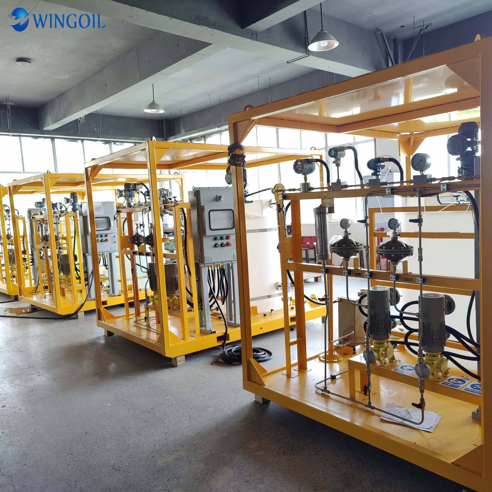 针对缓蚀剂等易受温度影响的介质,设备可搭配WY-1000L化学试剂储液撬使用,集成加热、保温与搅拌功能,确保介质始终处于稳定物理状态,杜绝沉淀分层导致的注入不均问题。整套系统采用闭环设计,配合防爆空压机撬提供安全动力源,完全适配油气田防爆、高温高压的严苛工况。