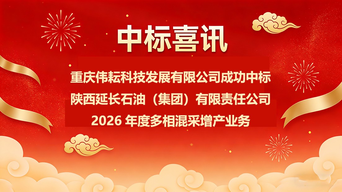 马年开门红,喜讯捷报传!近日,重庆伟耘科技发展有限公司凭借成熟的技术方案、稳定可靠的产品性能与完善的服务保障体系,成功中标延长油田 2026 年度井口多相混采增产业务项目,为公司新年市场开拓迎来良好开局。